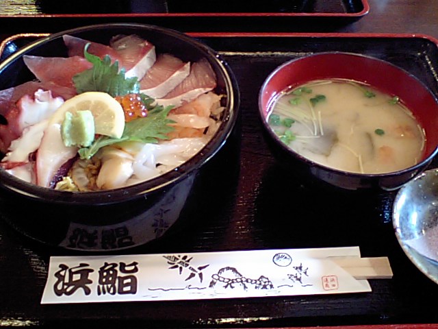 遅い昼食に「浜鮨」で「浜の桶寿司(吸物付)」、1050円。