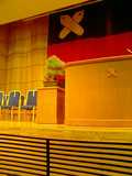 朝早くて大変だった。でも、僕が着いたときにはまだほとんど来ていなくて、前から2番目の列になってしまった。8:40までに入場ということだったんだが、時間になってもまだ半分も埋まっていない。こんなことならもっとゆっくり来れば良かったかも。