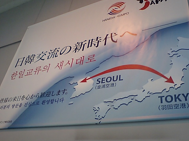羽田に「日韓交流の新時代へ」という看板があった。これは去年の講演「韓国から見た日韓・日朝関係」で言及されていた羽田・金浦のシャトル便の話か。