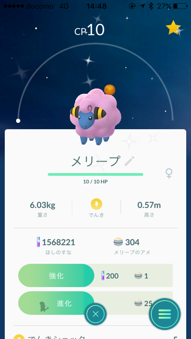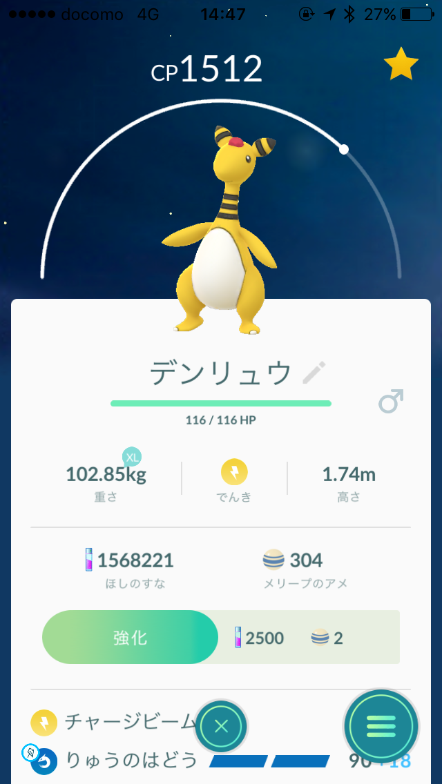 のコミュニテイデイ、一応色違いのメリープと「りゅうのはどう」持ちのデンリュウをゲット。 色違いはもう二匹欲しかったなぁ。